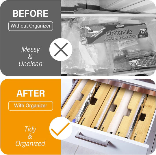 - Compatible avec la plupart des marques – L'organisation et le stockage de la feuille d'aluminium sont adaptés pour les emballages Reynolds, Glad Plastique, Saran Wrap, CutRite, pour emballage plastique, feuille d'aluminium et papier ciré. Non compatible avec les rouleaux de plus de 30,5 cm