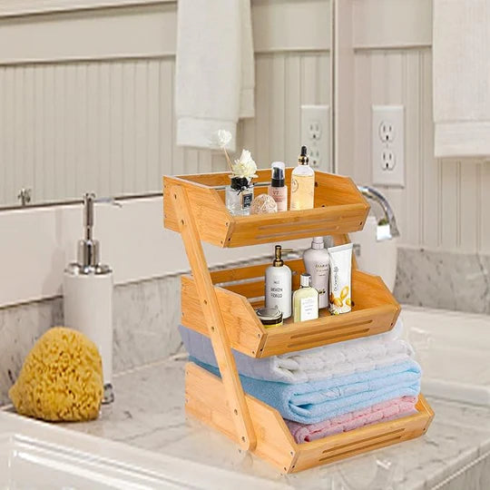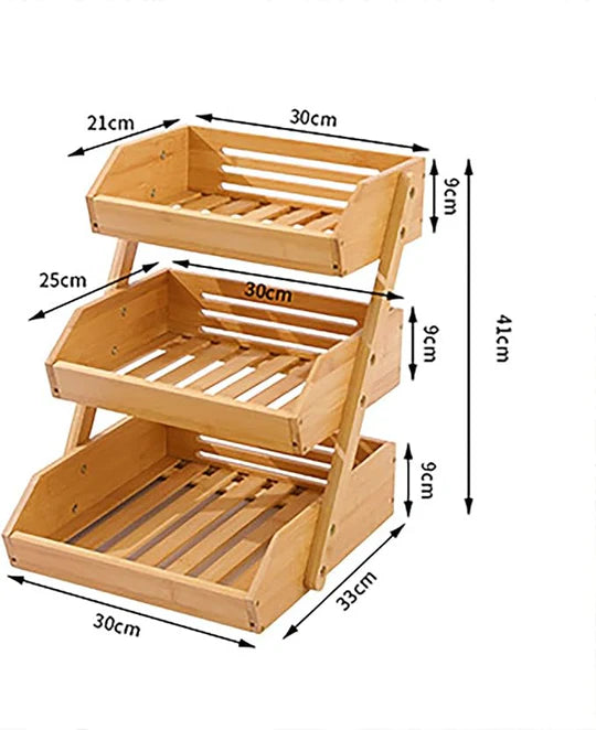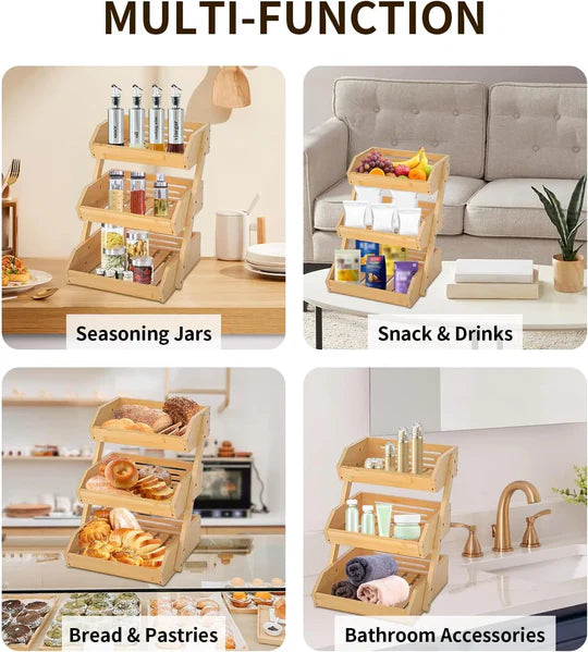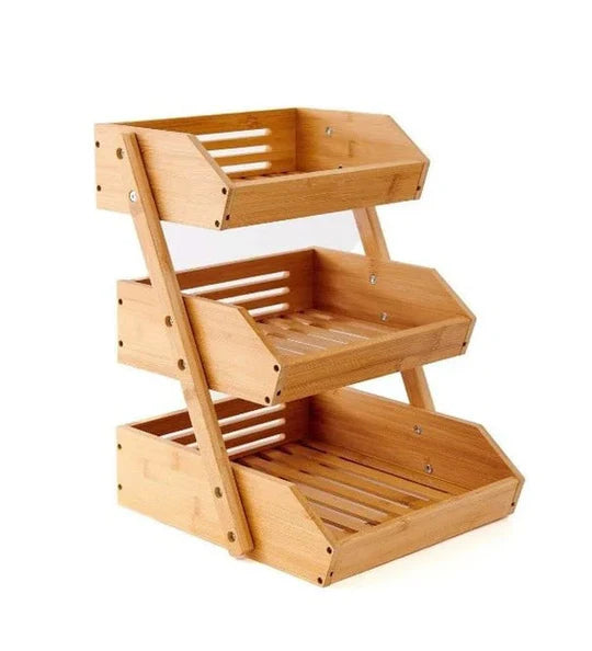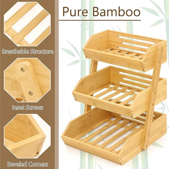 Panier à fruits et légumes en bambou à 3 niveaux.