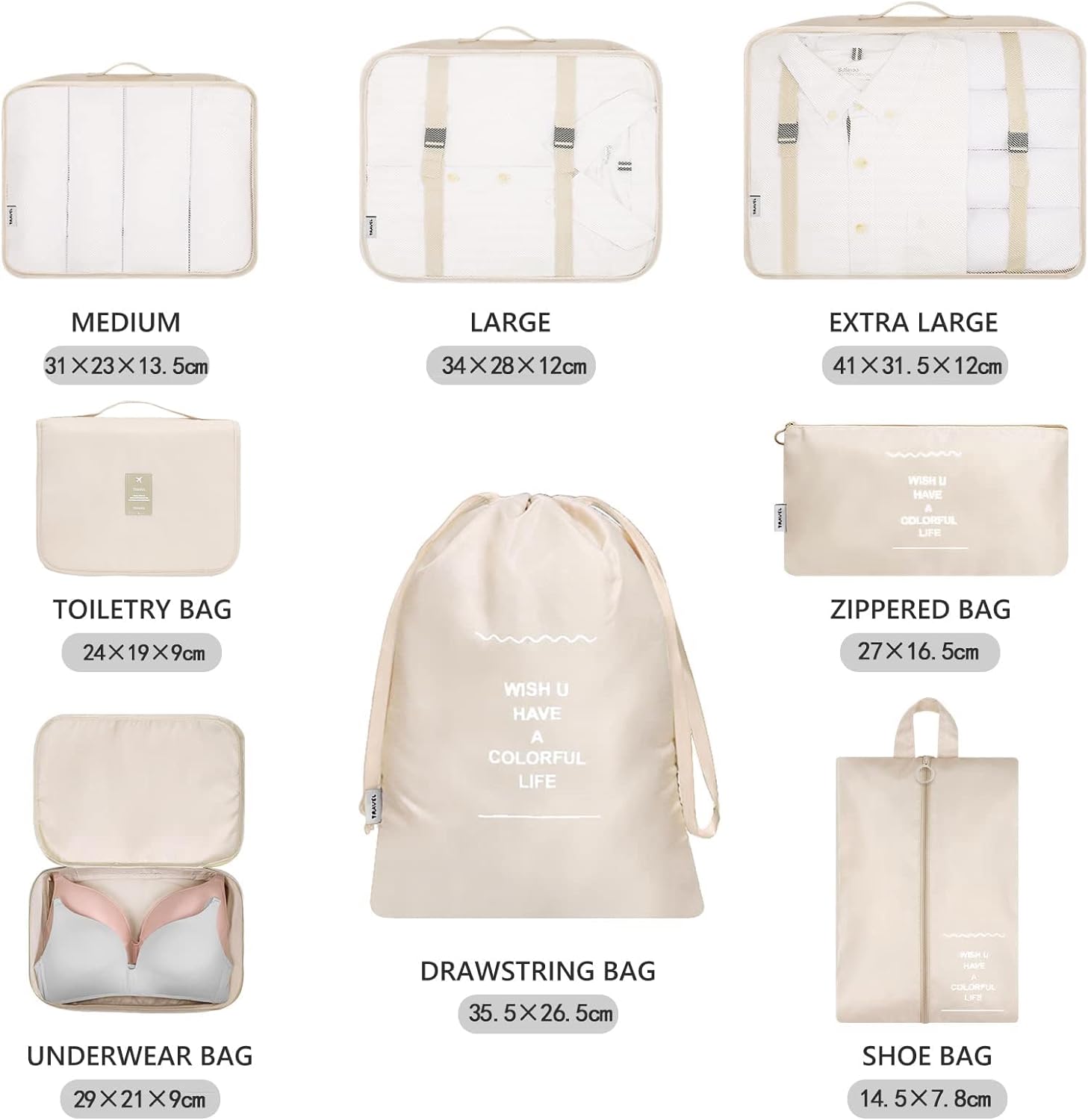 8Pcs Ensemble De Sacs De Voyage Pliables