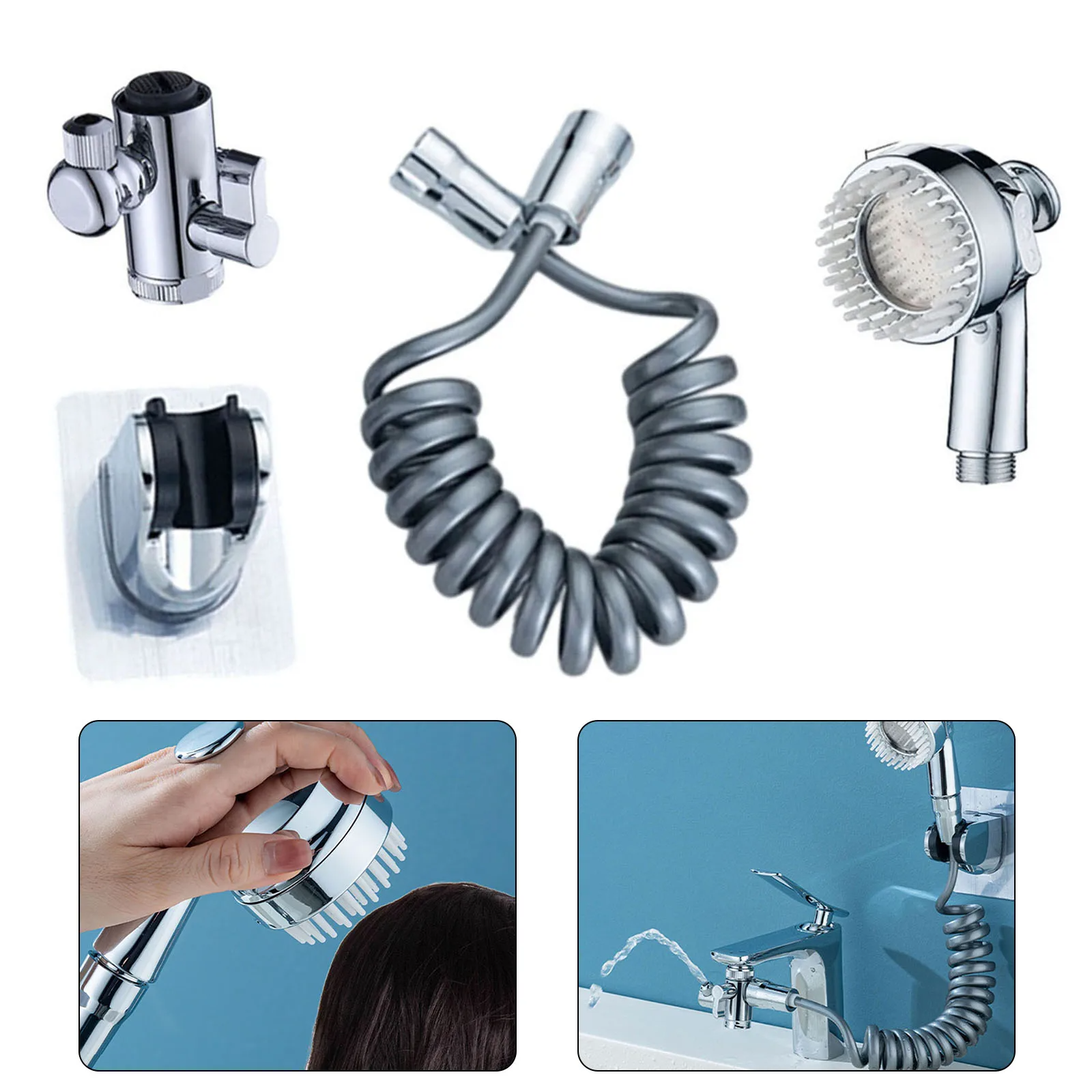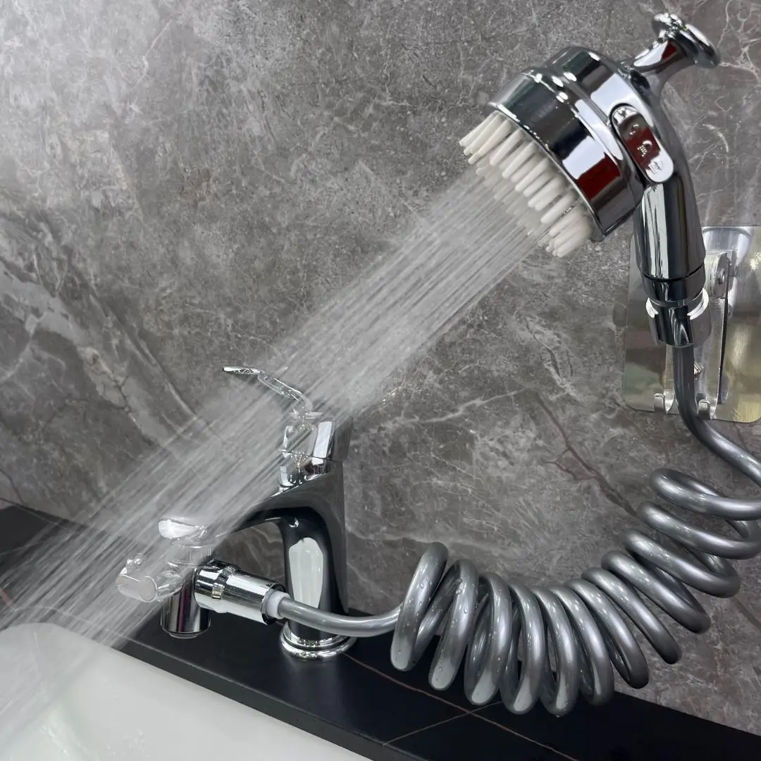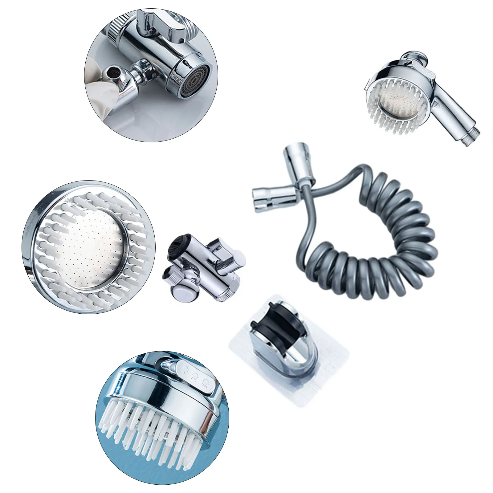 - L'ensemble Comprend: séparateur d'eau, tuyau de 2m, support de plaque adhésive, mini pommeau douche, un convertisseur (non inclus le robinet)