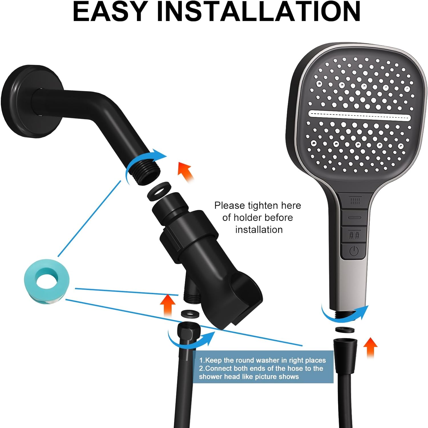 - 【MATÉRIAUX DE QUALITÉ SUPÉRIEURE】: La pomme de douche est fabriquée en plastique ABS de haute qualité, léger et durable, la pomme de douche au design moderne avec une finition de surface noire s'adapte parfaitement aux autres appareils de votre douche.